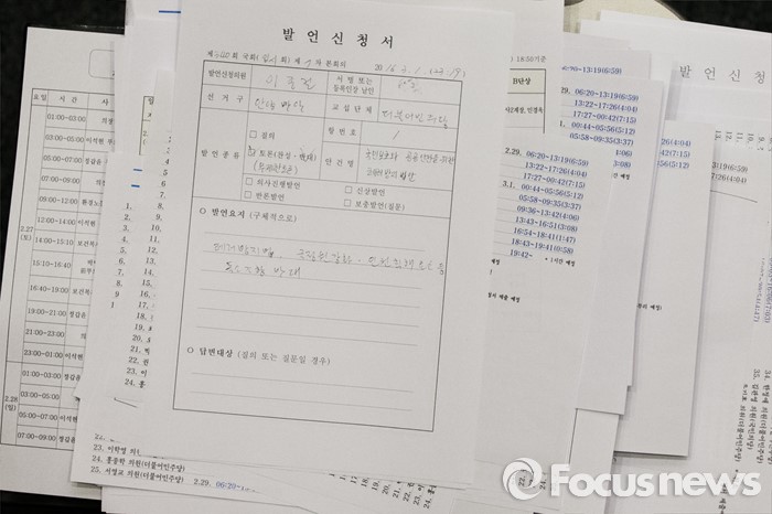| △ 본회의장에 놓인 이종걸 발언 신청서 |