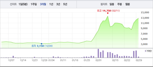콘돔 제조회사 유니더스는 2일 오전 9시22분 현재 전일 대비 5.35%(650원) 오른 1만2800원에 거래 중이다. 유니더스는 2월 26일 거래제한폭인 30%나 상승하는 등 꾸준히 상승 흐름을 이어가고 있다.