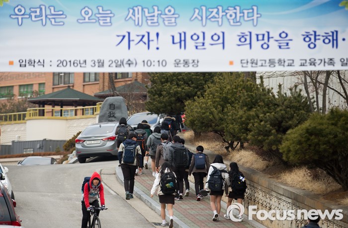 (안산=포커스뉴스) 2일 오전 신입생 입학식이 열리는 경기도 안산 단원고등학교에 학생들이 등교하고 있다.