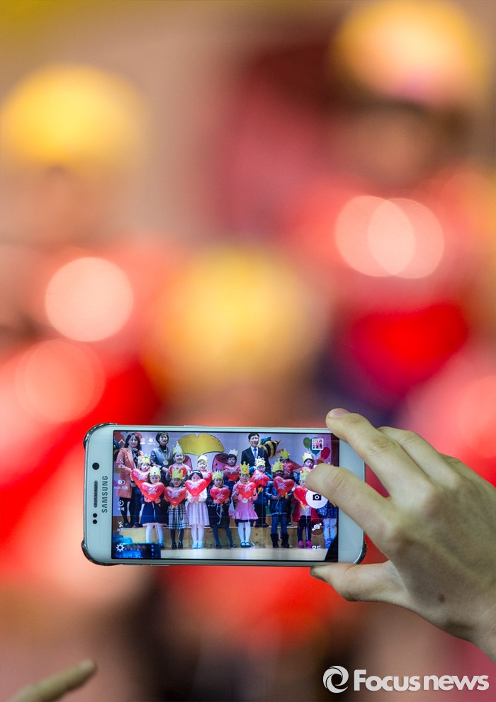 (서울=포커스뉴스) 2일 오전 서울 이태원 초등학교에서 열린 2016학년도 입학식에 참석한 학부모가 휴대전화로 자녀를 촬영하고 있다.