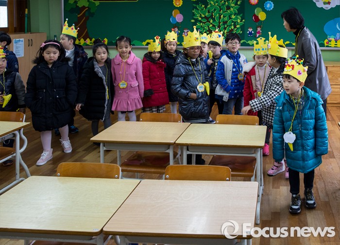 (서울=포커스뉴스) 2일 오전 서울 이태원 초등학교에서 열린 2016학년도 입학식에 참석한 어린이들이 교실을 확인하고 있다.