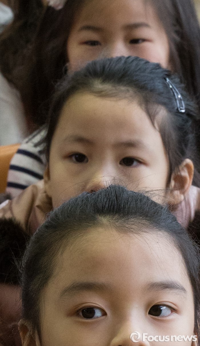 (서울=포커스뉴스) 2일 오전 서울 이태원 초등학교에서 열린 2016학년도 입학식에 참석한 신입생들이 교장 선생님의 인사말을 듣고 있다.