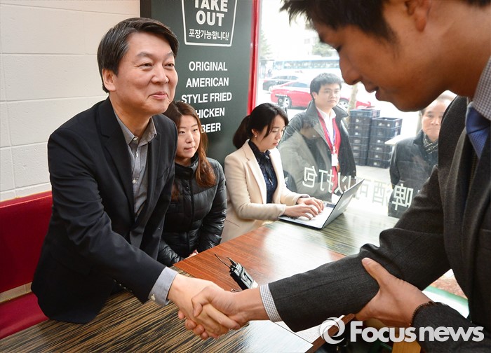 (서울=포커스뉴스) 안철수 국민의당 상임공동대표가 2일 오후 서울 여의도의 한 음식점에서 직장인들과 인사를 나누고 있다.