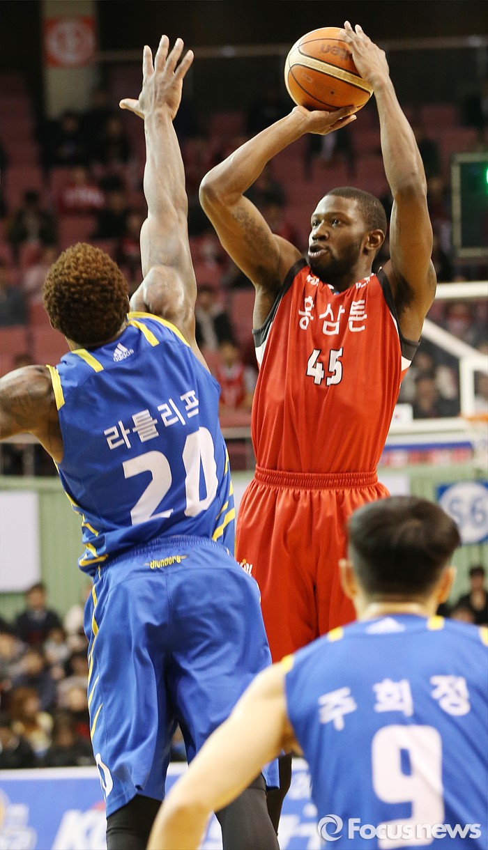 (서울=포커스뉴스) 2일 서울 잠실실내체육관에서 열린 2015-2016 프로농구 삼성-KGC 6강플레이오프 4차전에서 KGC 마리오 리틀이 삼성 라틀리프의 마크 위로 3점슛을 쏘고 있다.