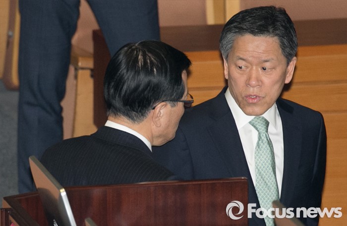 (서울=포커스뉴스) 2일 오후 서울 여의도 국회에서 열린 340회 국회(임시회) 7차 본회의에 참석한 정의화(왼쪽) 국회의장과 주승용 국민의당 원내대표가 대화하고 있다.