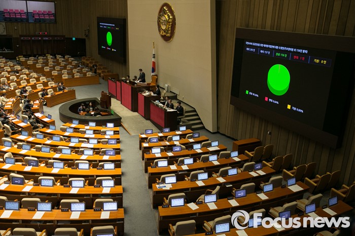 (서울=포커스뉴스) 2일 오후 서울 여의도 국회에서 열린 340회 국회(임시회) 7차 본회의에서 국민보호와 공공안전을 위한 테러방지법안에 대한 수정안(주호영 의원 외 156인 발의)이 재석 157인 중 찬성 156인, 반대 1인으로 통과되고 있다. 야당은 이날 여당의 수정안에 반발해 표결에 참여하지 않은 채 퇴장했다.