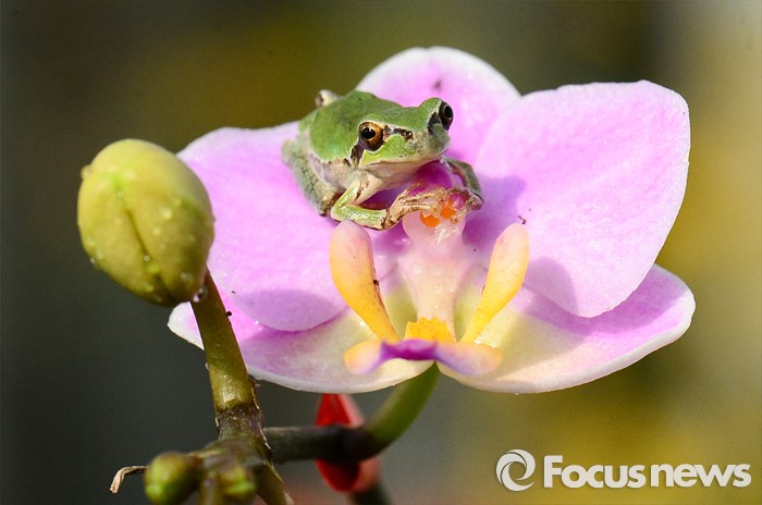 (청주=포커스뉴스) 경칩을 앞둔 3일 오전 충북 청주시 오창읍 충북농업기술원 화훼온실에서 청개구리가 겨울잠에서 깨어나 모습을 보이고 있다.