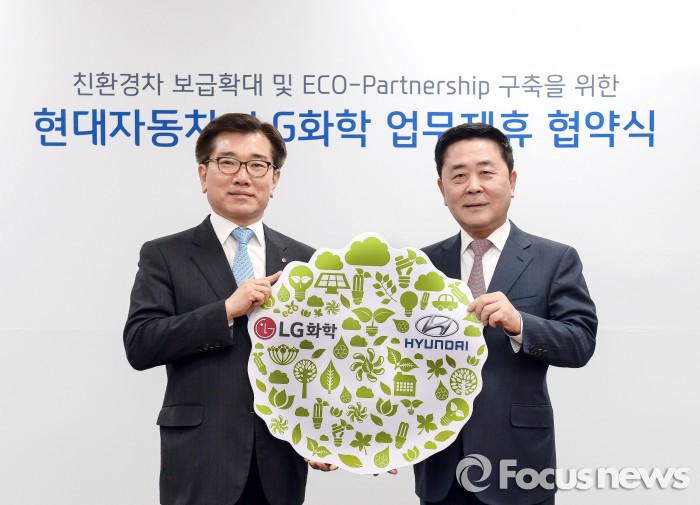 이날 현대자동차 영동대로 사옥에서 열린 협약식에는 곽진 현대차 국내영업본부장(부사장), 김종현 LG화학 자동차전지사업부장(부사장) 등 회사 관계자들이 참석해 업무제휴 협약식을 가지고 친환경차 보급확대와 친환경 활동에 나서기로 했다.