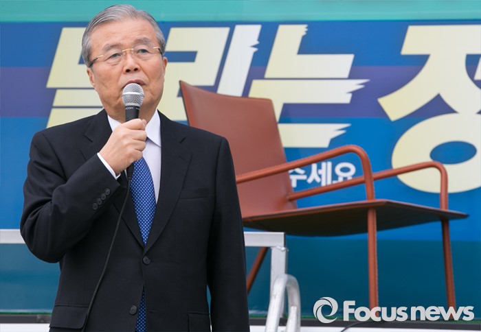 (서울=포커스뉴스) 김종인 더불어민주당 비대위 대표가 3일 오전 서울 여의도 국회 앞에서 열린 달리는 정책의자 발대식에 참석해 인사말을 하고 있다.