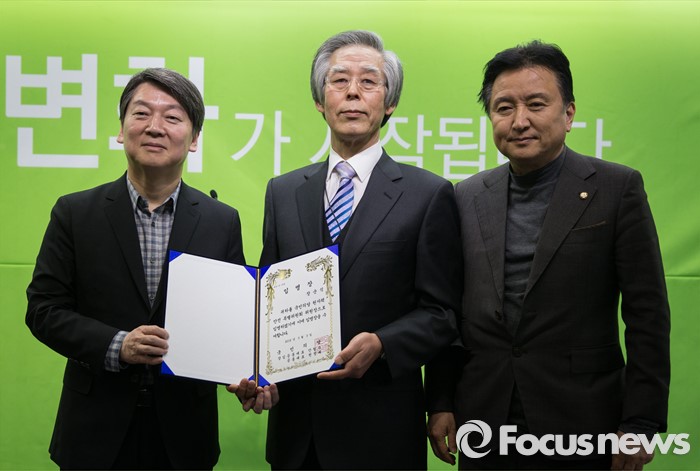(서울=포커스뉴스) 안철수 국민의당 상임공동대표가 3일 오전 서울 마포구 국민의당 당사에서 장순식 박사, 원자력안전특위 위원장 위촉을 발표한 후 임명장을 수여하고 있다.