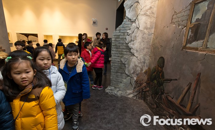 (대전=포커스뉴스) 3일 오전 입학 후 첫 수업에 들어간 대전 화정초등학교 1학년 신입생들이 대전 유성구 국립대전현충원 천안함 46용사 묘역 참배를 마치고 보훈미래관 내부 전시물을 관람하고 있다.