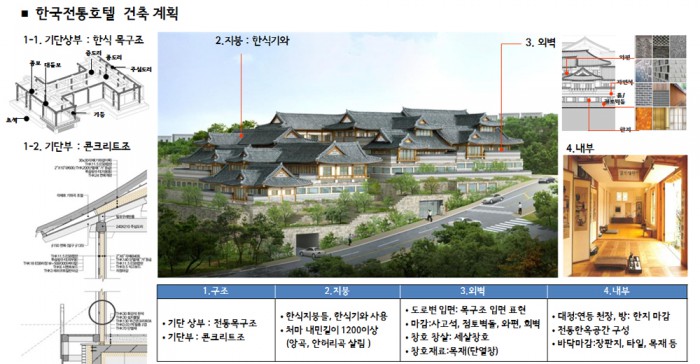 한편, 장충동 호텔신라 부지는 한양도성과 인접한 자연경관지구와 역사문화미관지구가 뒤섞여 있어 건축물 신·증축이 까다롭지만 2011년 자연경관지구라도 자연경관과 조화를 이루는 '한국전통호텔'은 허용했다.호텔신라의 새 건축안 한옥호텔의 조감도와 계획안.<자료제공=서울시>