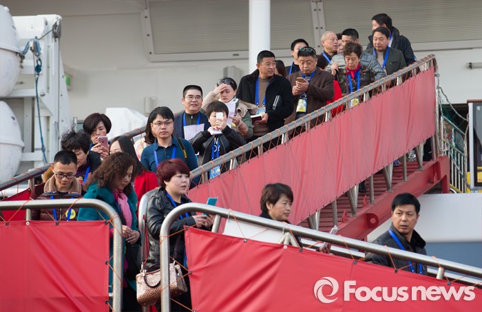 (인천=포커스뉴스) 4일 오전 인천 연수구 송도신항에 정박해 있는 아시아 최대 크루즈인 '퀀텀 오브 더 시즈'호에서 관광객들이 내리고 있다.