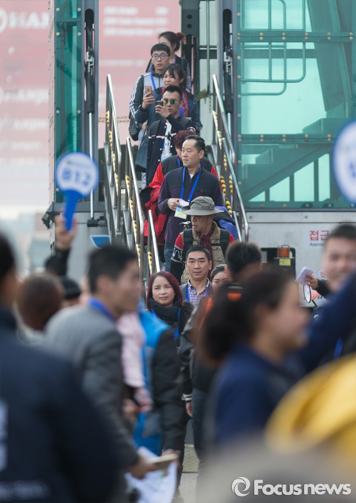 (인천=포커스뉴스) 4일 오전 인천 연수구 송도신항에 정박해 있는 아시아 최대 크루즈인 '퀀텀 오브 더 시즈'호에서 관광객들이 내리고 있다.
