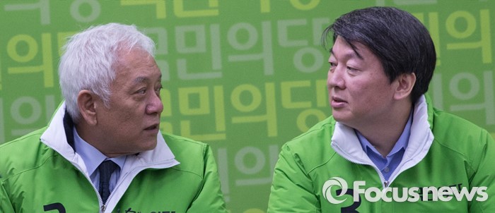 (서울=포커스뉴스) 국민의당 안철수(오른쪽) 상임공동대표와 김한길 선거대책위원장이 4일 오전 서울 마포구 국민의당 당사에서 열린 4차 선거대책 회의에 참석해 얼굴을 마주보며 대화하고 있다.