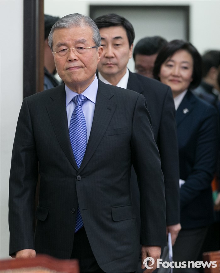 (서울=포커스뉴스) 김종인(왼쪽부터) 더불어민주당 비대위 대표, 이종걸 원내대표, 박영선 비대위원 등이 4일 오전 서울 여의도 국회에서 열린 비대위-선대위 연석회의에 참석하고 있다.