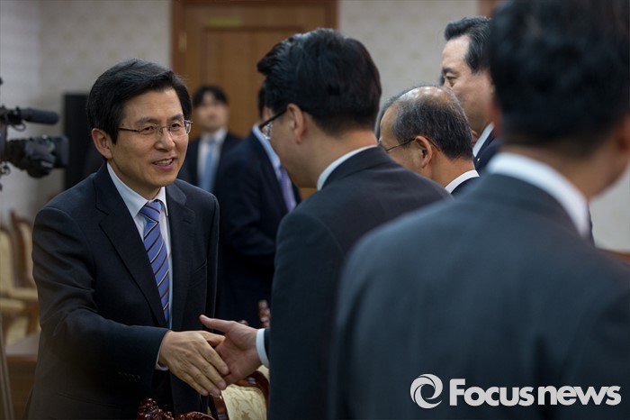 (서울=포커스뉴스) 황교안 국무총리가 4일 오전 서울 종로구 정부서울청사에서 열린 '공명선거관계장관회의'에 자리한 관계 부처 장관들과 악수 하고 있다.