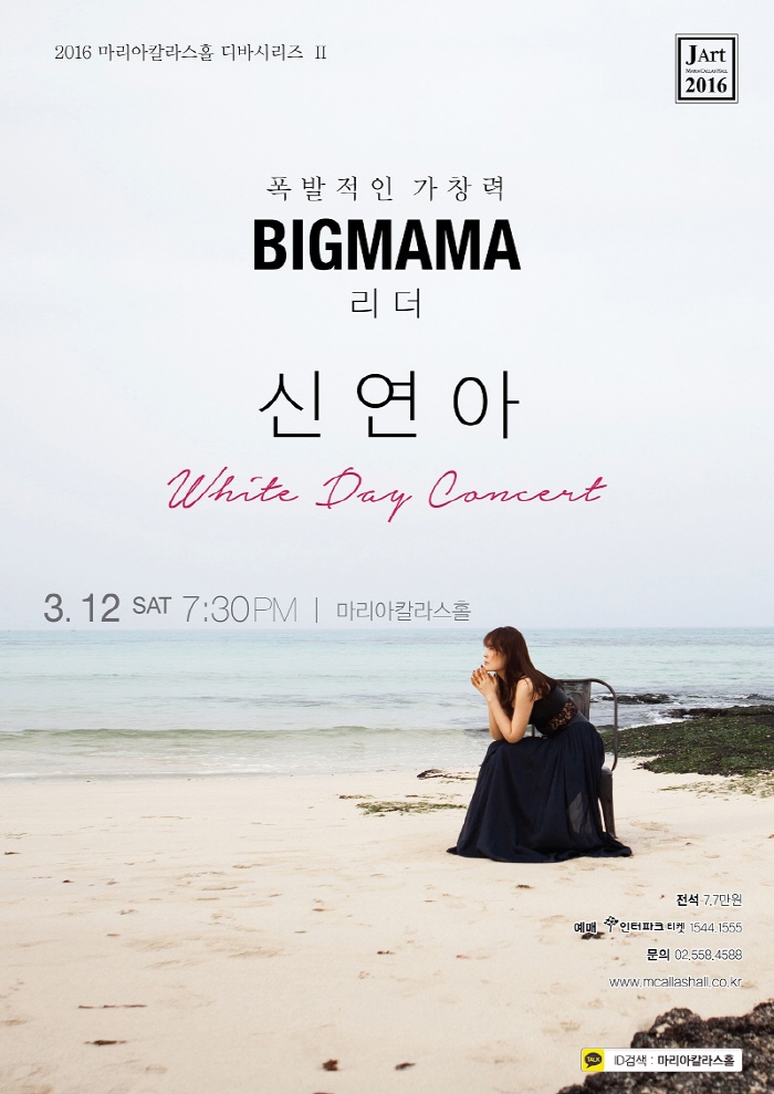 콘서트는 인터파크와 마리아칼라스홀을 통해 예매할 수 있다.그룹 빅마마 출신 가수 신연아가 오는 12일 오후 7시30분 서울 대치동에 위치한 마리아칼라스홀에서 화이트데이 기념 단독 콘서트를 연다. 사진은 공연 포스터. <사진제공=포츈>
