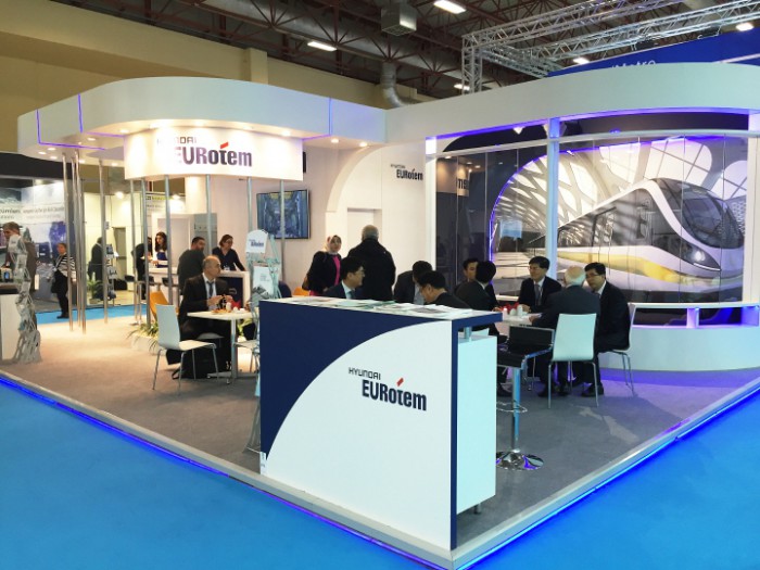 현대로템 관계자는 “이번 전시회를 통해 터키 현지화 기업 이미지를 널리 홍보하고 한국의 우수한 철도차량 제작 기술력을 알리는 데 주력하겠다”며 “향후 5년간 고속철을 포함해 40억 달러(약 5조원)로 추정되는 터키를 비롯한 유럽 철도시장 공략에도 박차를 가할 계획"이라고 말했다.제6회 유라시아 레일 2016(Eurasia Rail 2016)에 참가한 현대로템 부스 전경. <사진제공=현대로템>
