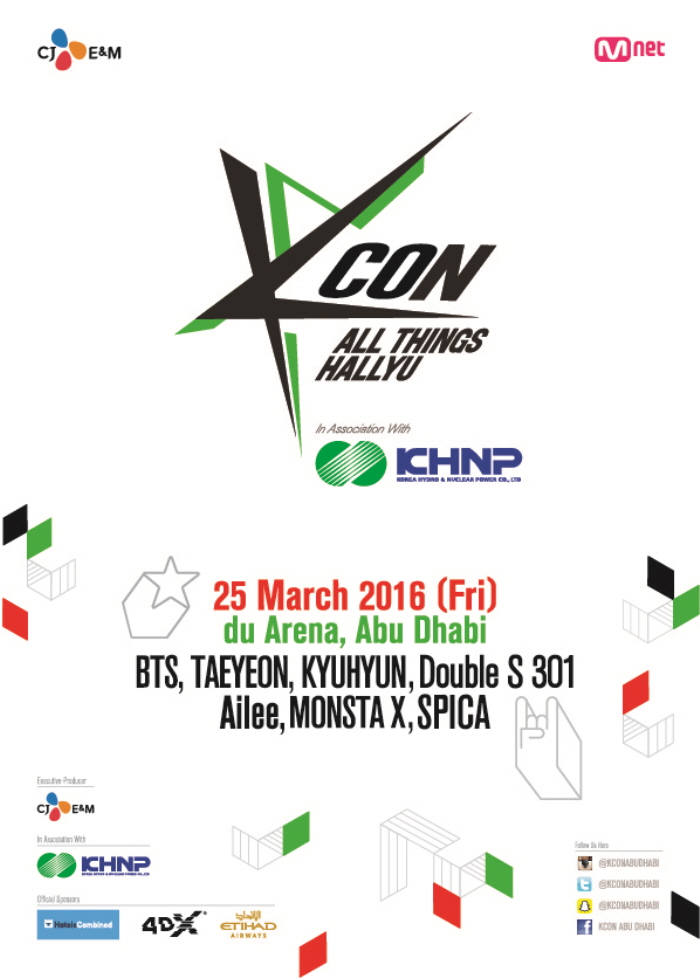 종합콘텐츠 기업 CJ E&M은 4일 “오는 3월 아랍에미레이트연합(UAE)의 수도 아부다비에서 열리는 ‘케이콘 2016 아부다비(KCON 2016 Abu Dhabi)’ 콘서트 티켓이 1차 매진됐다”고 밝혔다.
