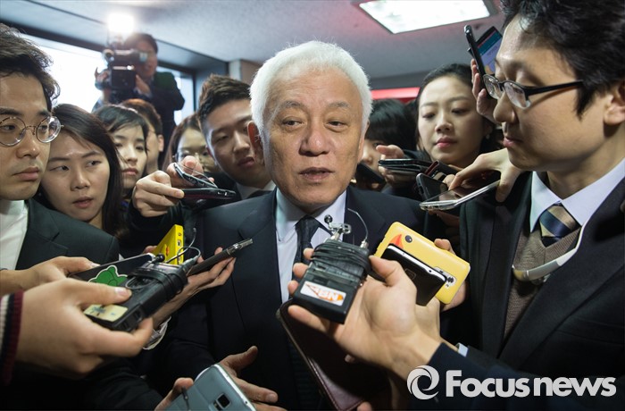 (서울=포커스뉴스) 선거대책 회의를 마친 김한길 국민의당 선대위원장이 4일 오전 서울 마포구 국민의당 당사에서 기자들의 질문을 받으며 당사를 빠져나고오 있다.