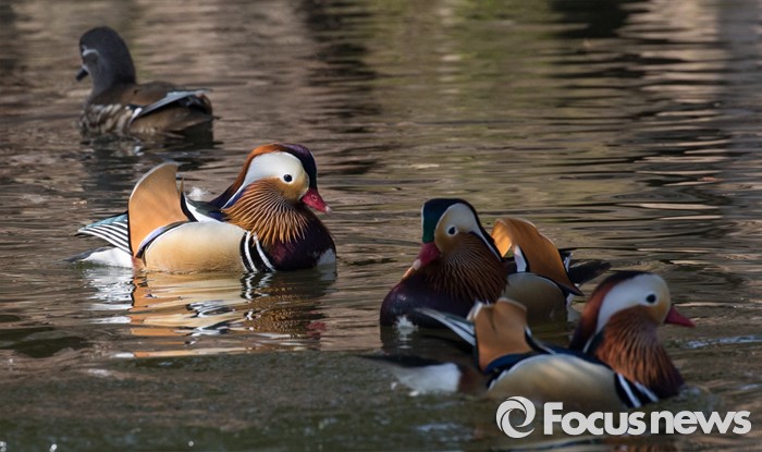 (서울=포커스뉴스) 동면하던 동물이 땅속에서 깨어난다는 경칩을 하루 앞둔 4일 오전 서울 종로구 창경궁 춘당지에서 원앙들이따스한 봄볕을 쐬고 있다.