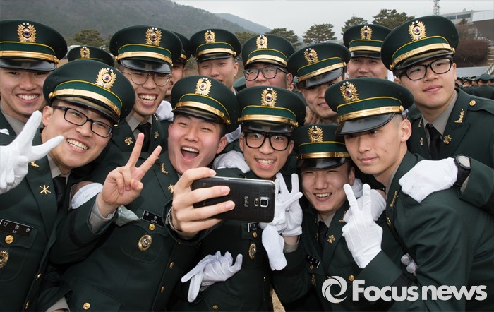 (계룡=포커스뉴스) 4일 오전 충남 계룡대 연병장에서 열린 2016년 장교 합동임관식 리허설에서 신임장교들이 셀카를 찍고 있다.