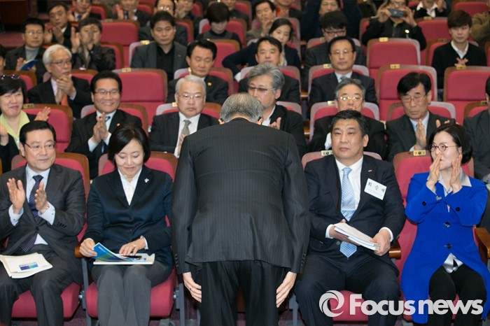 (서울=포커스뉴스) 김종인(앞 뒷모습) 더불어민주당 비대위 대표가 4일 오후 서울 여의도 국회 의원회관에서 열린 소상공인 20대 총선 정책공약 전달식에 참석해, 인사하고 있다.