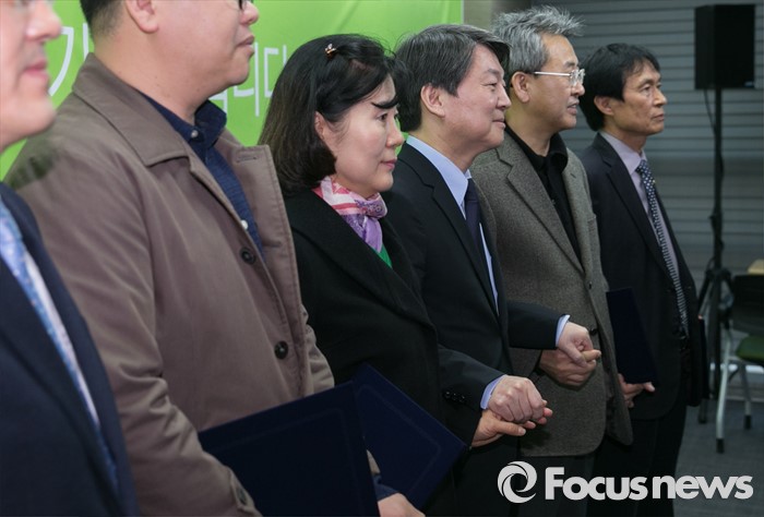 (서울=포커스뉴스) 안철수(오른쪽 세번째) 국민의당 상임공동대표가 4일 오후 서울 마포구 당사에서 열린 선거관리위원장 및 위원 위촉장 수여식에 참석해 위원장으로 위촉된 김종현(오른쪽 두번째) 동아대학교 전임교수 등 위원들과 함께 취재진을 향해 포즈를 취하고 있다.