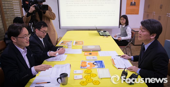 (서울=포커스뉴스) 안철수 국민의당 상임공동대표가 4일 오후 서울 종로구 희망제작소에서 열린 '노란 테이블 시민 토론회' 브리핑에 참석해 이원재 희망제작소 소장의 설명을 듣고 있다.