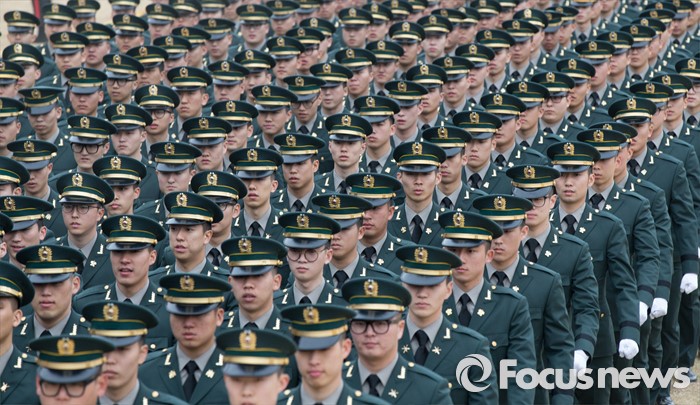 (계룡=포커스뉴스) 4일 오후 충남 계룡대 연병장에서 열린 2016년 장교 합동임관식에서 신임장교들이 행진을 하고 있다.