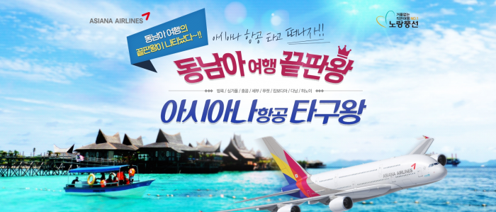 여행사 노랑풍선이 '한번 가면 계속 생각나는 동남아 여행지 best 8'을 테마로 기획전을 선보였다. 저가항공사가 아닌 아시아나항공을 이용할 수 있어 더 눈길을 끈다.
