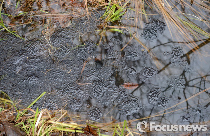 (영암=포커스뉴스) 전국적으로 봄비가 내리고 절기상경칩인 5일 전남 영암군 영암읍 월출산 자락에 겨울잠에서 깨어난 산개구리들이 산란한 알이 물웅덩이를 뒤덥고 있다. <사진제공=김현태 양서류연구가>