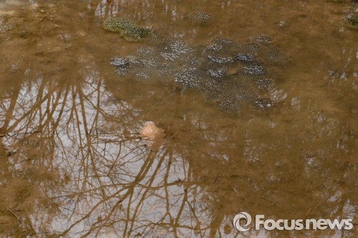 (영암=포커스뉴스) 전국적으로 봄비가 내리고 절기상경칩인 5일 전남 영암군 영암읍 월출산 자락에 겨울잠에서 깨어난 산개구리들이 산란한 알이 계곡에 뭉쳐 있다. <사진제공=김현태 양서류연구가>
