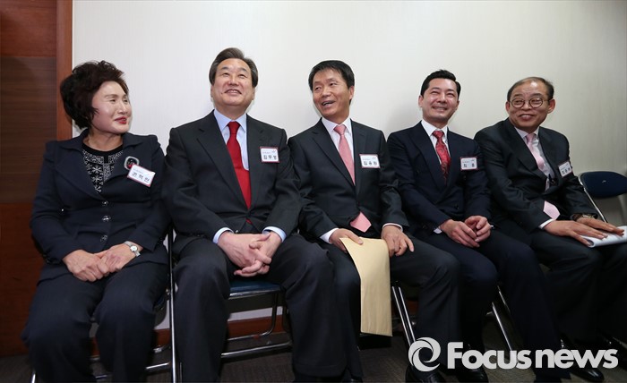 | △ 예비후보자들과 나란히 앉은 김무성 대표 |