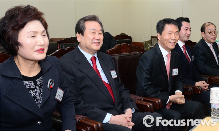(서울=포커스뉴스) 6일 오전 서울 여의도 새누리당사에서 실시된 공천면접에 참석한 김무성 대표와 참석자들이 공천관리위원들의 질문에 웃고 있다.