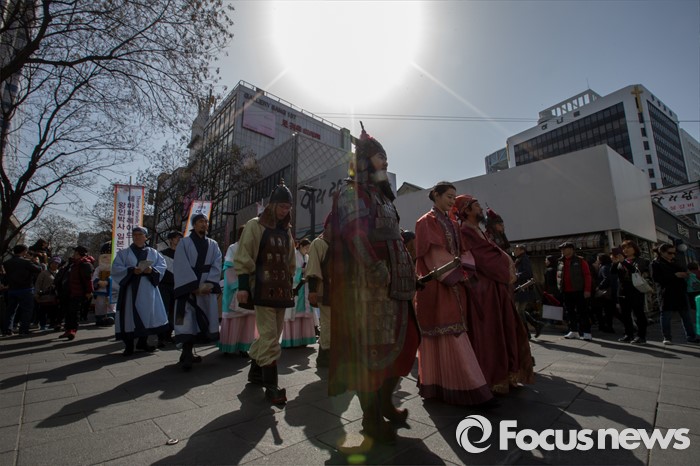 (서울=포커스뉴스) 6일 오후 서울 종로구 인사동에서 '2016 영암왕인문화축제'를 알리기 위한 '왕인박사 일본가오' 퍼레이드가 펼쳐지고 있다.