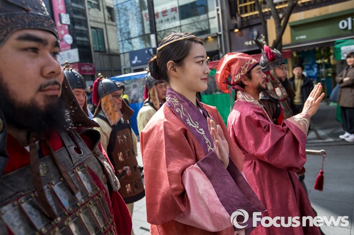 (서울=포커스뉴스) 6일 오후 서울 종로구 인사동에서 '2016 영암왕인문화축제'를 알리기 위한 '왕인박사 일본가오' 퍼레이드가 펼쳐지고 있다.
