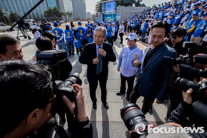 | △ 더민주 총선 응원가 뮤비 촬영 마친 김종인 대표 |