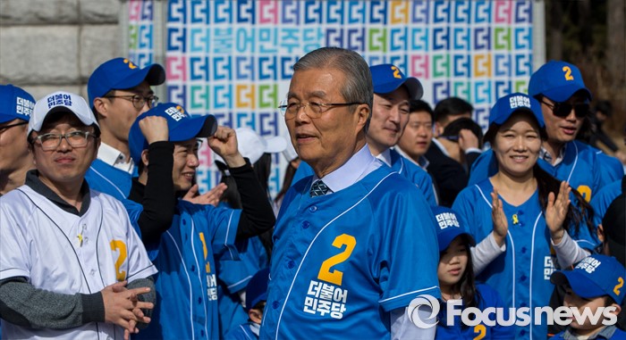 (서울=포커스뉴스) 김종인 더불어민주당 비상대책위원회 대표가 6일 오후 서울 영등포구 국회 본관 앞에서 열린 '더불어민주당 총선 응원가 뮤직비디오 촬영'에 참여하기 위해 촬영장으로 이동하자 당원들이 손을 흔들며 환호 하고 있다.