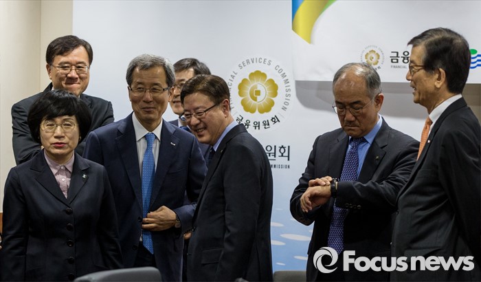 (서울=포커스뉴스) 7일 오전 서울 중구 금융위원회 대회의실에서 열린 '성과중심 문화 확산을 위한 금융위원회-금융공공기관 MOU 체결식'에 참석한 금융공공기관장 및 관계자들이 대화하고 있다.