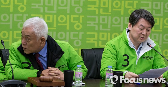 (서울=포커스뉴스) 7일 오전 서울 마포구 당사에서 열린 선거대책위원회의에 참석한 안철수(오른쪽) 국민의당 상임공동대표가 모두발언을 하고 있다.
