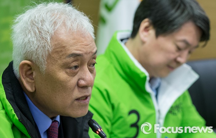 (서울=포커스뉴스) 7일 오전 서울 마포구 당사에서 열린 선거대책위원회의에 참석한 김한길(왼쪽) 국민의당 상임 선대위원장이 모두발언을 하고 있다.