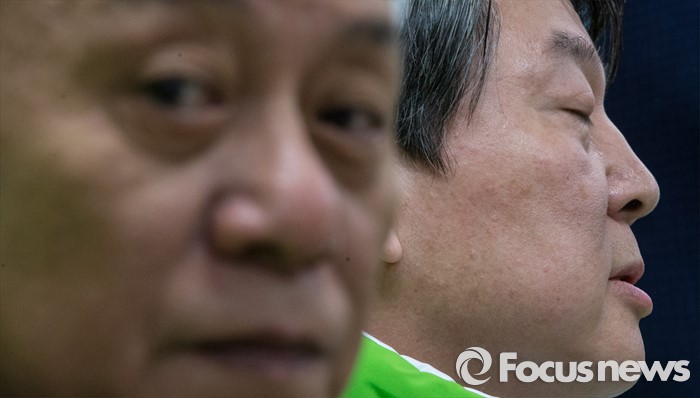 (서울=포커스뉴스) 7일 오전 서울 마포구 당사에서 열린 선거대책위원회의에 참석한 안철수(오른쪽) 국민의당 상임공동대표와 김한길 상임 선대위원장이 생각에 잠겨 있다.
