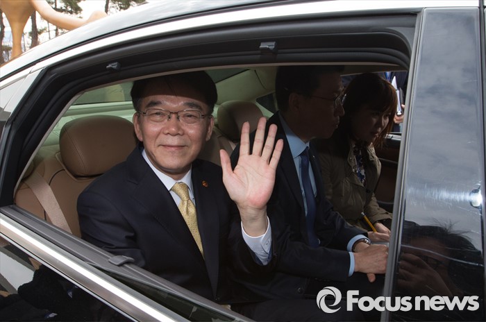 (세종=포커스뉴스) 7일 오전 세종시 정부세종청사 국토교통부 앞에서제1호 자율주행차 시험운행 허가 및 시연이 열린 가운데 현대 제네시스가 국내 자율주행차 임시운행 제1호차로 허가받고 도로주행을 시작했다. 강호인 국토교통부장관이 시범운행차량을 시승하고 있다.