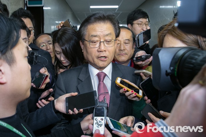 (서울=포커스뉴스) 공천 탈락 통보를 받은 김태환 새누리당 의원이 7일 오전 서울 여의도 국회에서 열린 최고위원회의에 참석한 뒤, 기자들의 질문에 답하며 밖으로 나가고 있다.
