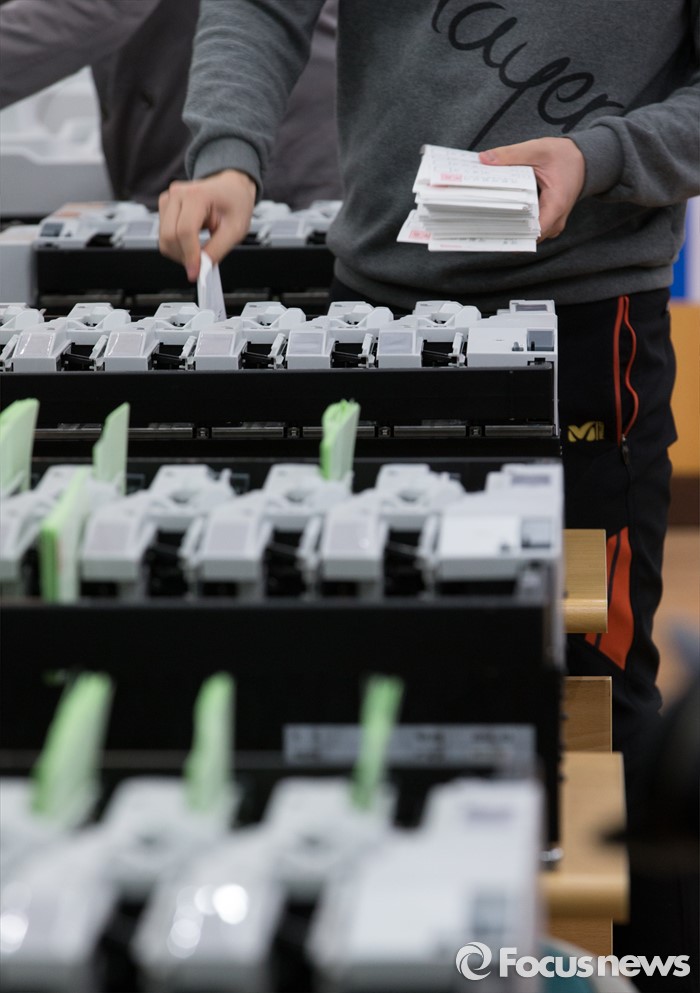 (서울=포커스뉴스) 제20대 총선을 한 달여 앞둔 7일 오후 서울 종로구 중앙선거관리위원회 선거연수원에서 투표지 분류기 담당자들이 장비점검 및 개표관리 실습교육을 하고 있다.