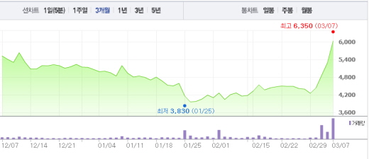이어 최 연구원은 “올해 1분기 실적 발표 등이 조선업종을 끌고 갈 가장 중요한 이벤트”라면서 “이런 상황을 계속 지켜봐야 한다”고 주문했다.대우조선해양 주가흐름<사진출처=네이버 캡쳐>