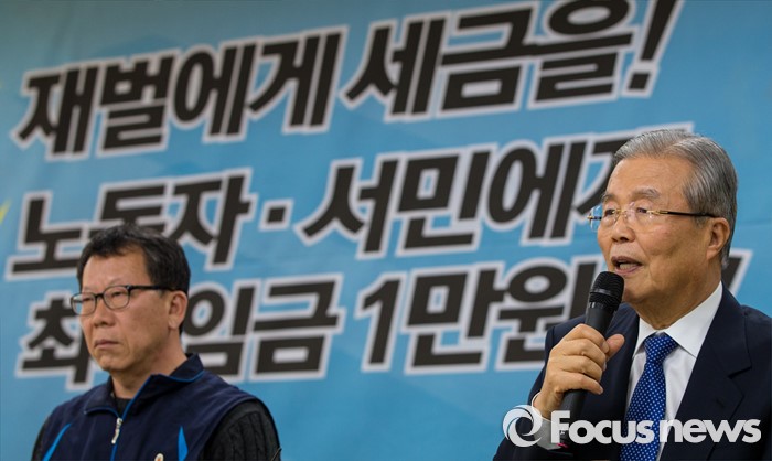 (서울=포커스뉴스) 7일 오후 서울 중구 민주노총을 방문한 김종인(오른쪽) 더불어민주당 비상대책위원회 대표가 인사말을 하고 있다.