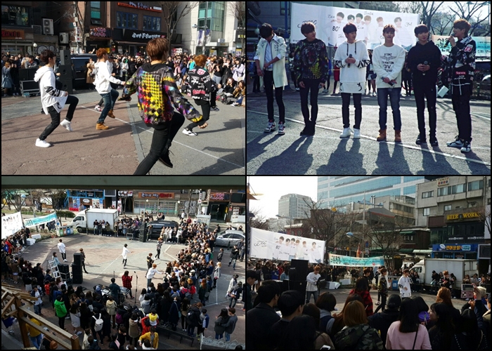 한편 JJCC는 오는 9일 정오 국내 주요 온라인 음악 사이트를 신곡 ‘오늘 한 번’ 음원 공개를 시작으로 본격적인 컴백활동에 나선다.보이그룹 JJCC가 지난 6일 오후 서울 홍대 인근 걷고 싶은 거리에 위치한 야외무대에서 약 한 시간가량 게릴라 쇼케이스를 개최했다.<사진제공=더잭키찬그룹코리아>
